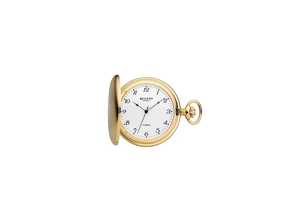 Regent P-714: elegantní zlaté provedení s precizním mechanickým strojkem a dekorativním víkem.