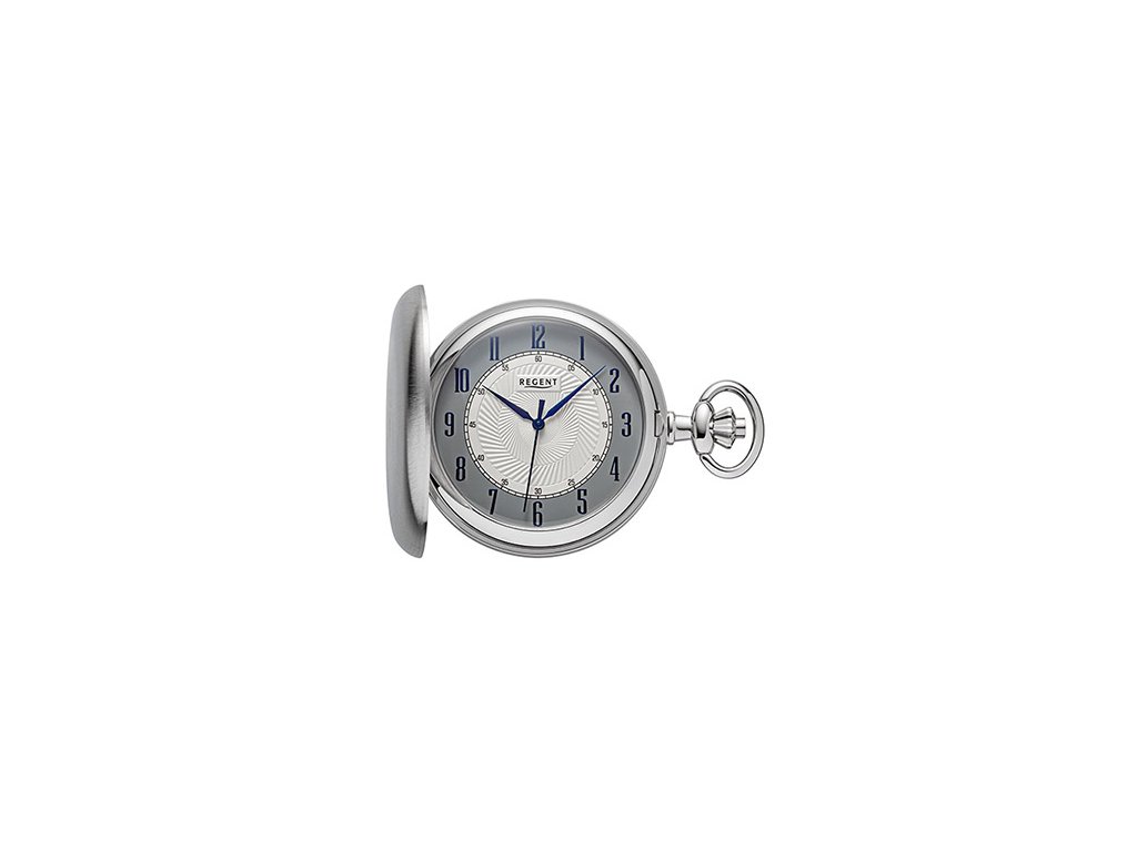 Quartzové kapesní hodinky v moderním stylu, Chromované matné pouzdro o průměru 50 mm, modré ručičky na stříbrném ciferníku dodávají hodinkám na eleganci, ciferník zdoben dymanickým ornamentem. Kombinace klasického a moderního designu. Dodáváme s řetízkem.