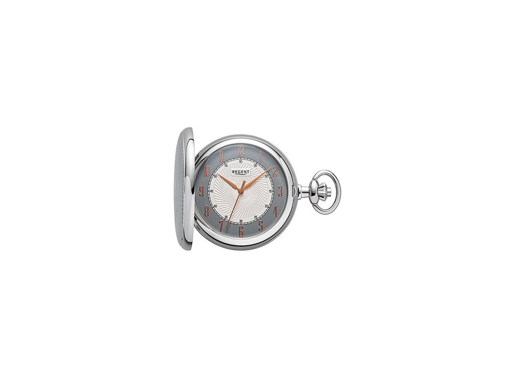 Quartzové kapesní hodinky v moderním stylu, Chromované lesklé pouzdro o průměru 50 mm, díky barvě ručiček na stříbrném ciferníku lze pohodlně číst čas, ciferník zdoben dymanickým ornamentem. Kombinace klasického a moderního designu. Dodáváme s řetízkem.